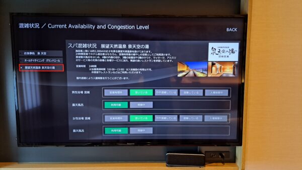 Smart TV: You can check the real-time congestion of the hot springs and the status of the laundry machines (including how many minutes are left) right from your TV!